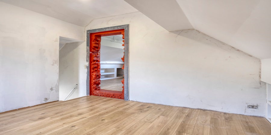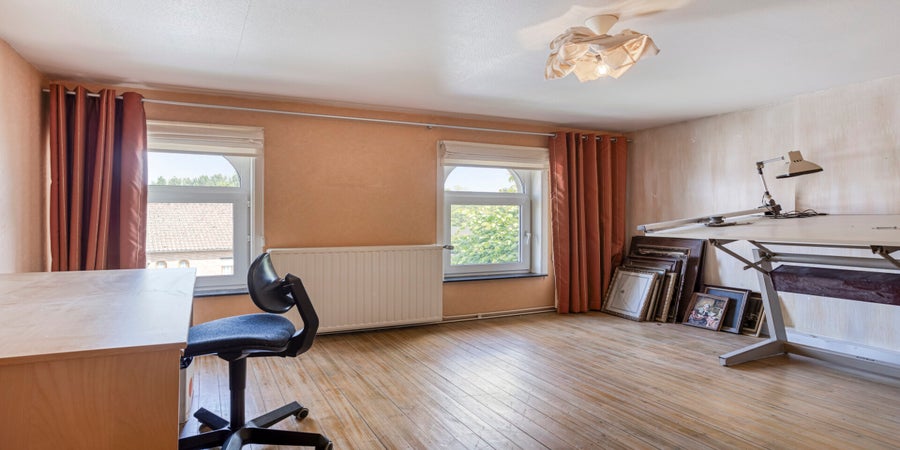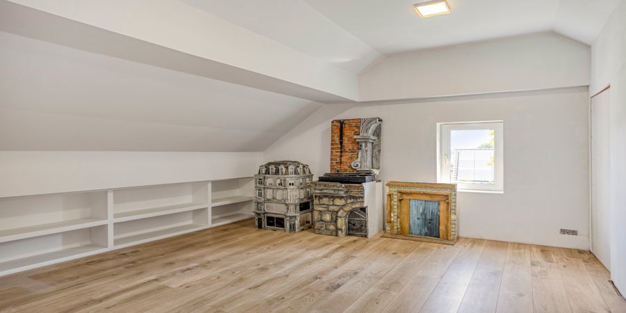 Op de eerste verdieping bevinden zich twee volwaardige slaapkamers en een tweede badkamer. De zolderverdieping biedt mogelijkheden tot het inrichten van twee extra slaapkamers met ruimte voor een dressing – ideaal voor gezinnen of wie nood heeft aan extra flexibiliteit.
