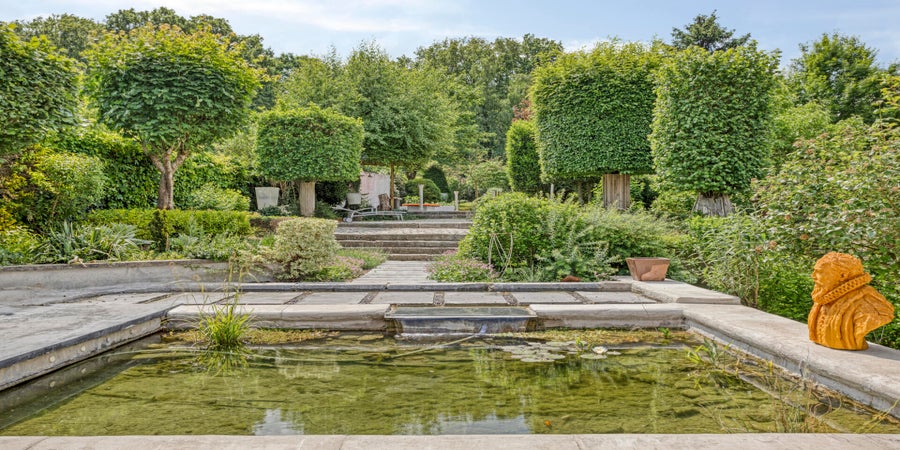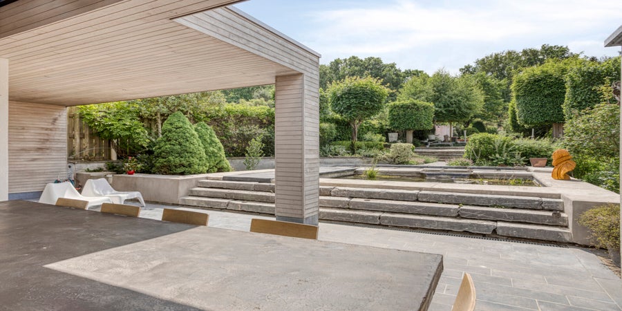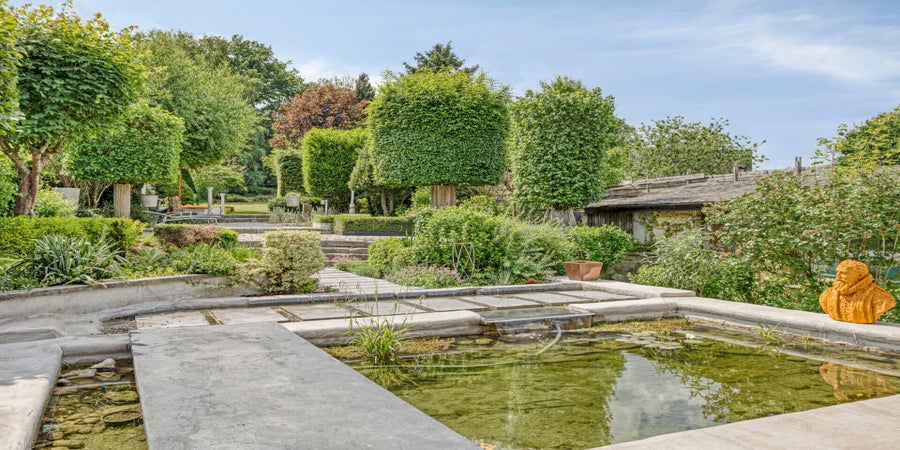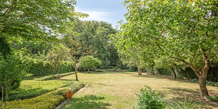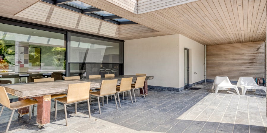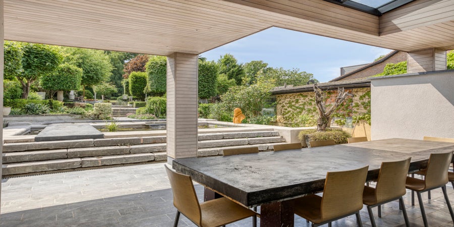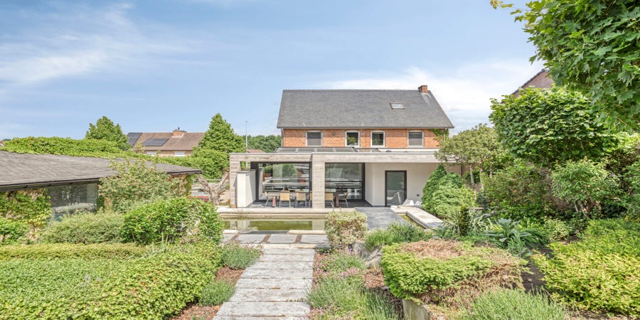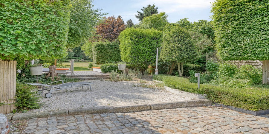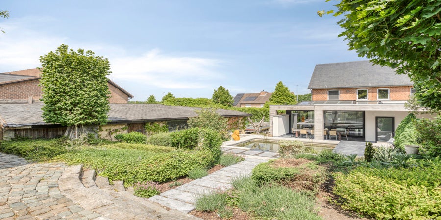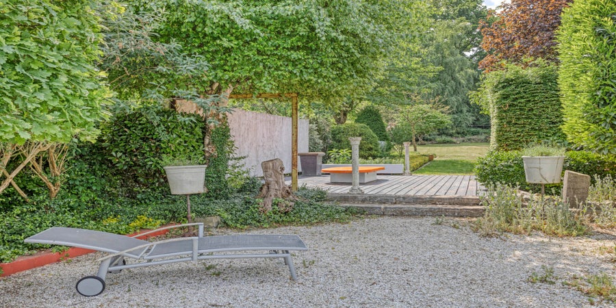 Buiten wordt u ondergedompeld in een ware oase van rust. Het zonovergoten terras biedt uitzicht op een prachtig aangelegde tuin met twee vijvers en een open zicht op het achterliggende bos. Privacy en natuur gaan hier hand in hand. Als extra troef is er een groot werkatelier van ca. 70 m² – ideaal voor hobby, werk of atelier.